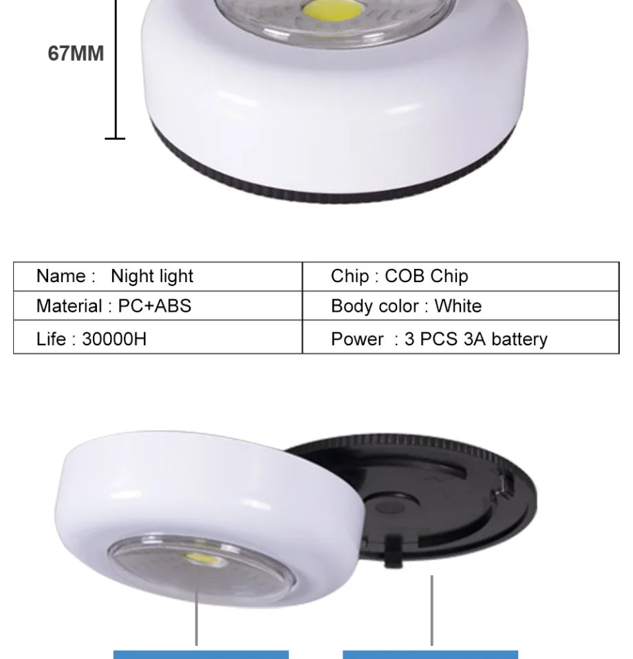 COB LED svetilka pod omaro – brezžična nočna svetilka z lepilnim trakom za kuhinjo, spalnico, omare in predale
