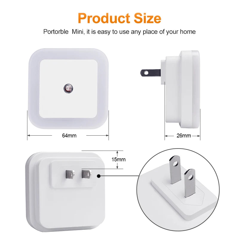 EU/US LED nočna svetilka z vtičem – samodejna, varčna, za otroke in dom