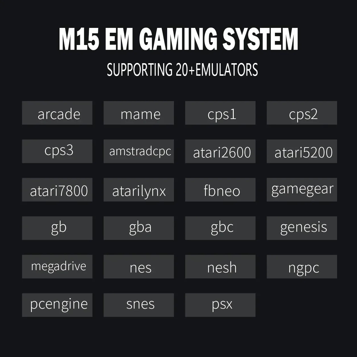 | Emulatorji | 23 (cps1, cps2, cps3, fbneo, gamegear, gb, gba, gbc, genesis, megadrive, nes, ngpc, pcengine, ps1, sfc, snes …) |