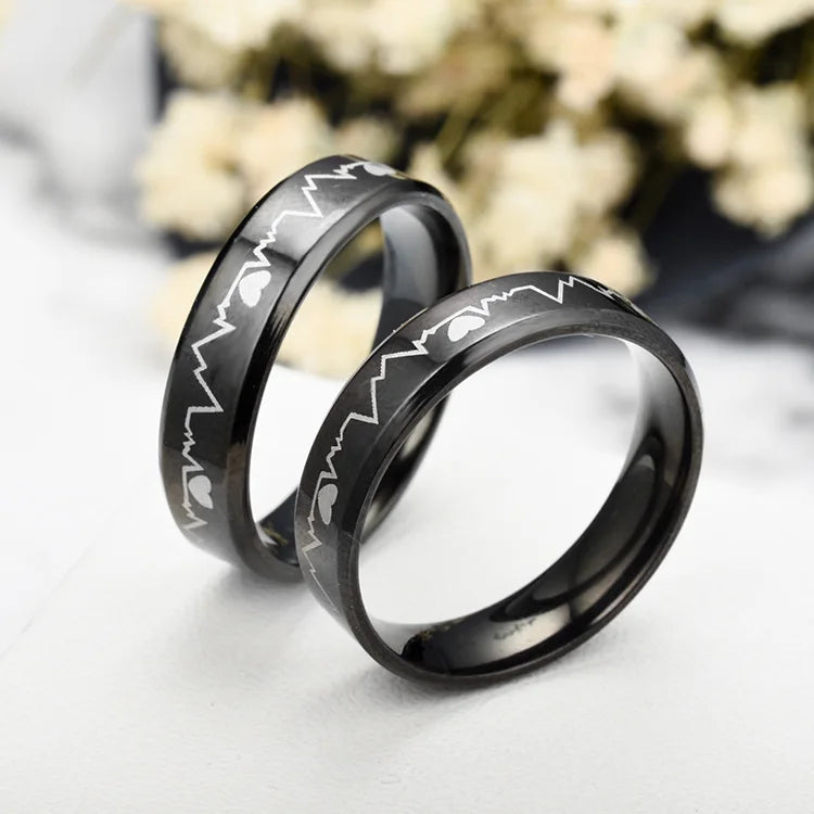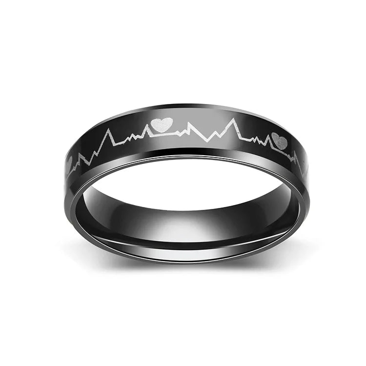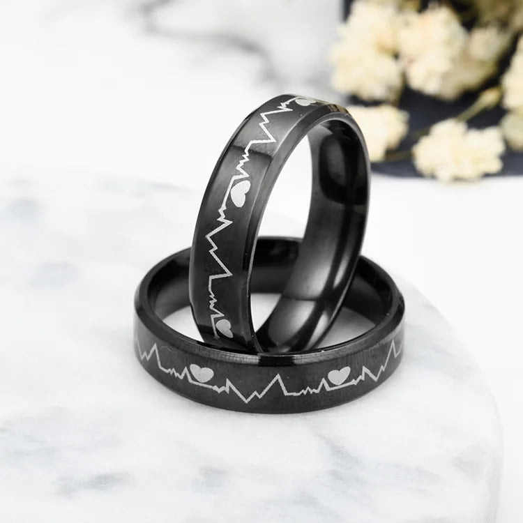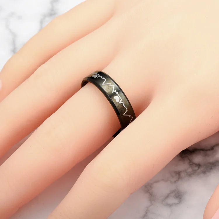 Modni prstan iz titanskega jekla – ECG srce za pare, korejski minimalistični trend, unisex prstan za fanta in punco, darilni nakit