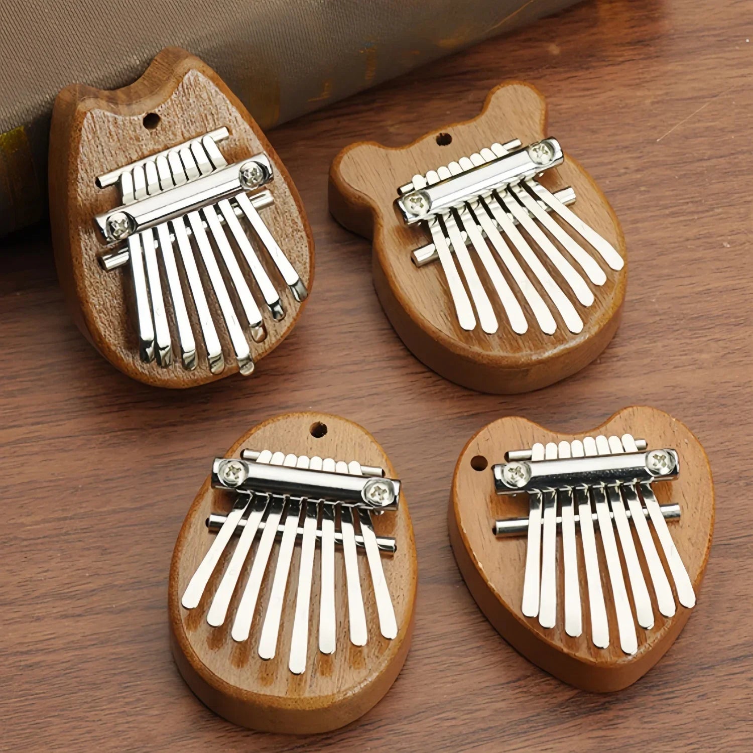 Izdelana iz trdnega lesa, je Kalimba trpežna in zagotavlja čudovit, očarljiv zvok. Na voljo v različnih oblikah: mačja oblika (9 × 6,5 × 3,5 cm) in kapljica vode (8,2 × 6,7 × 3,6 cm).