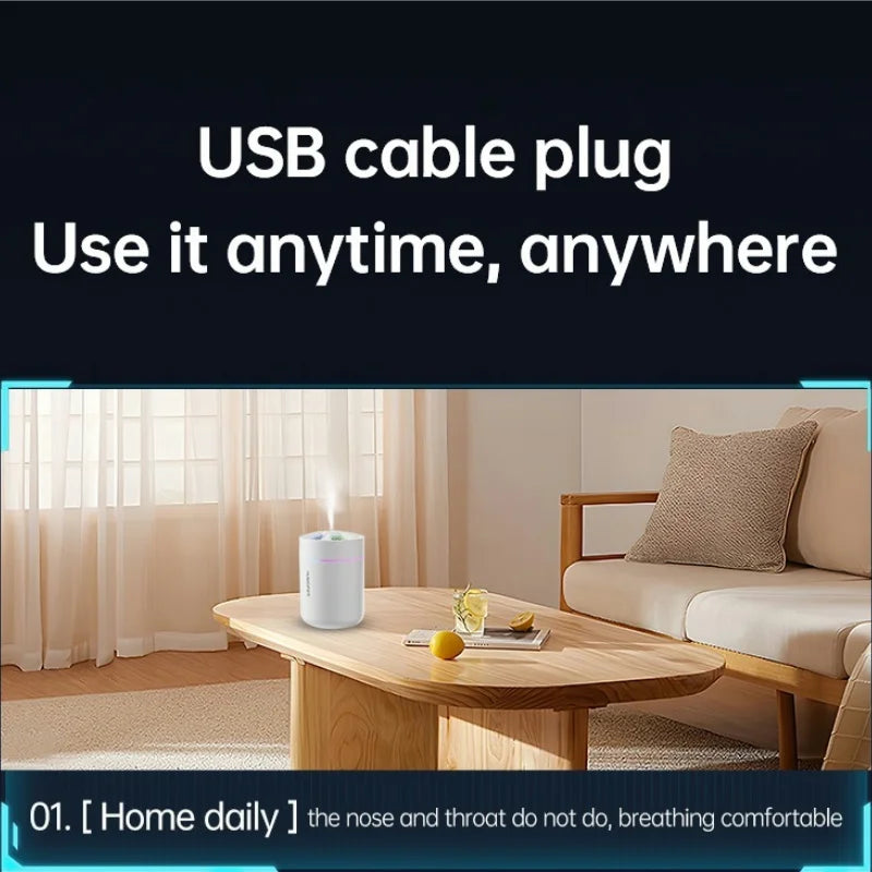 Uživajte v svežem, čistem in prijetno odišavljenem zraku s tem kompaktnim in tihim ultrazvočnim vlažilnikom zraka. Združuje funkcionalnost, estetiko in sproščujočo aromaterapijo – popoln za dom, spalnico, pisarno ali celo avtomobil.