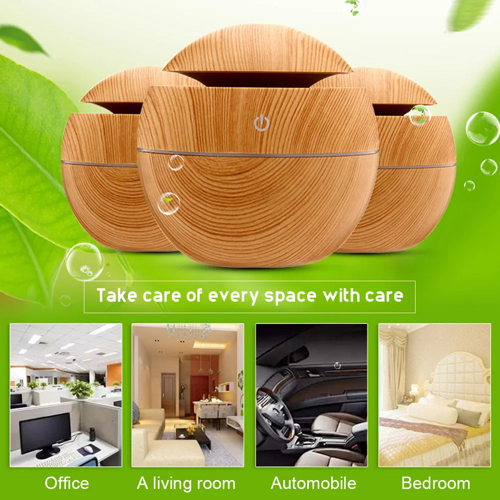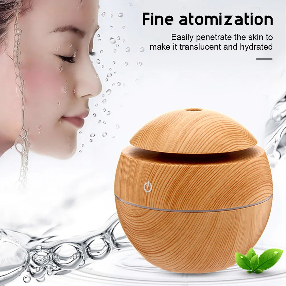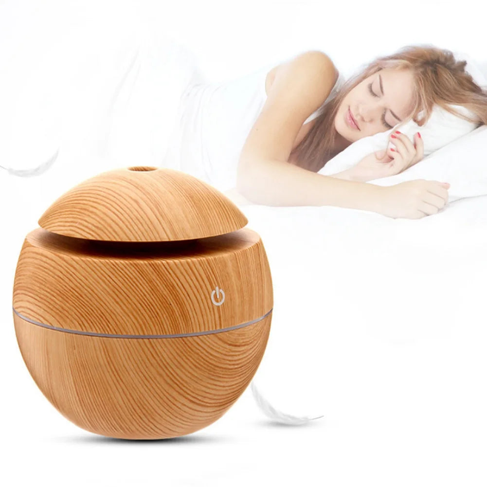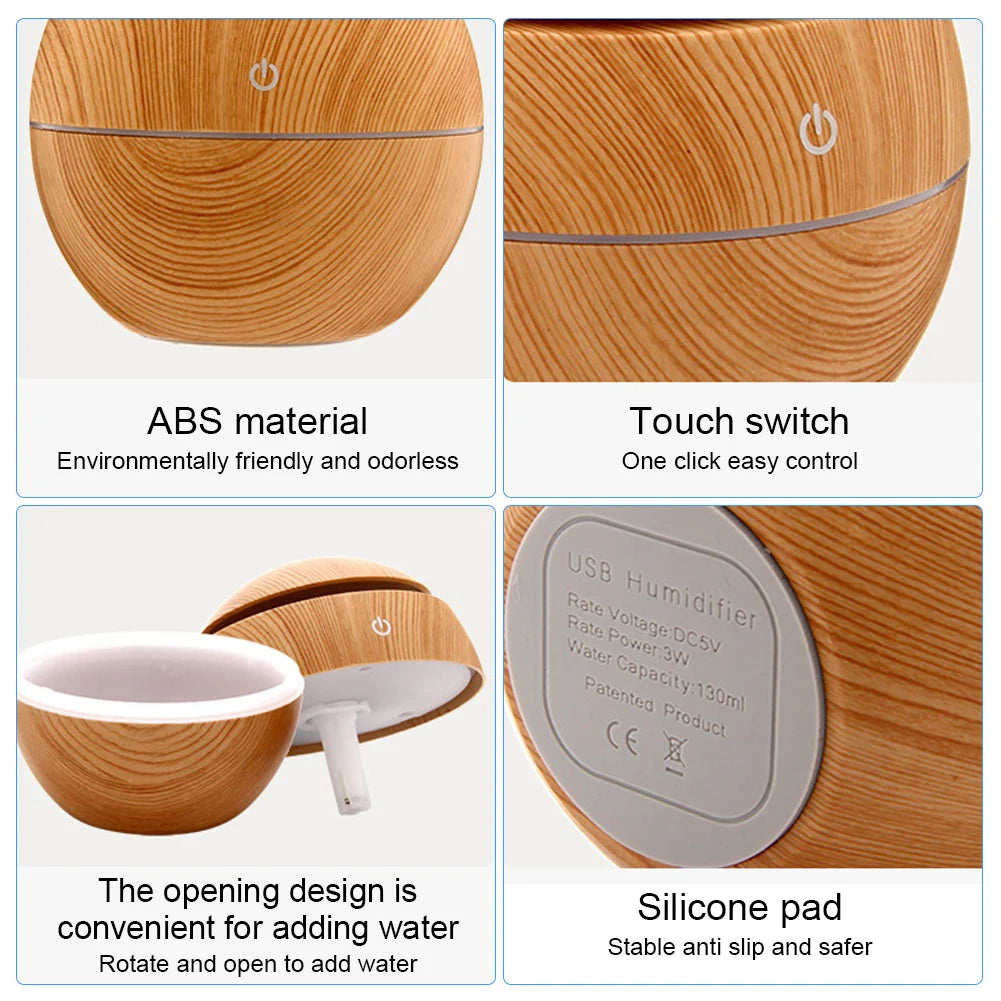 USB ultrazvočni vlažilnik zraka z eteričnimi olji – mini aroma difuzor z lesenim vzorcem, električni razpršilnik dišav in čistilec zraka