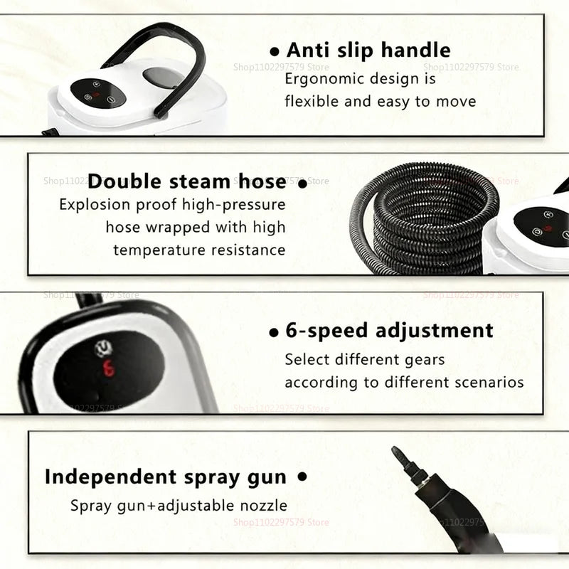 Izboljšajte čiščenje doma ali poslovnih prostorov z zmogljivim 2500W ročnim parnim čistilcem, ki združuje moč, hitrost in večnamensko uporabo. Para visokega tlaka in temperature zagotavlja temeljito čiščenje, sterilizacijo in odstranitev trdovratne umazanije brez kemikalij. Idealno za kuhinje, kopalnice, pohištvo, preproge in druge površine, kjer želite hitro, higienično in učinkovito čiščenje.