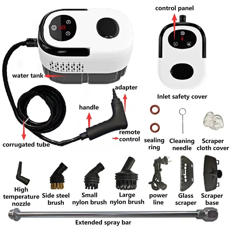 Visokotemperaturni parni čistilec 2500W – z zaslonom na dotik, za gospodinjstvo, klimatske naprave, kuhinjske nape, hitro segrevanje, avte