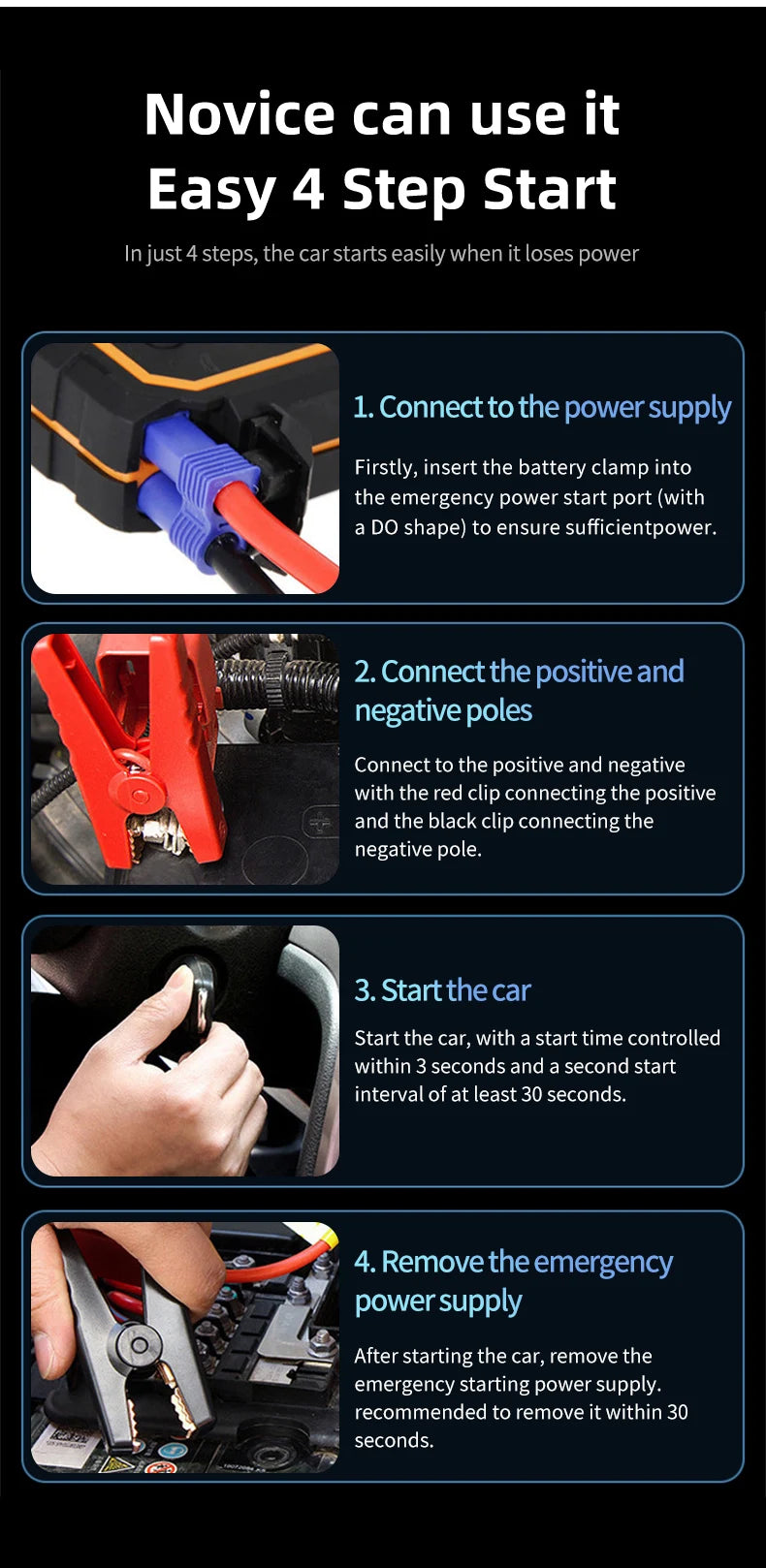 Deluje kot power bank in nujni zagon 12V vozil, primeren tako za bencinske kot dizelske motorje.